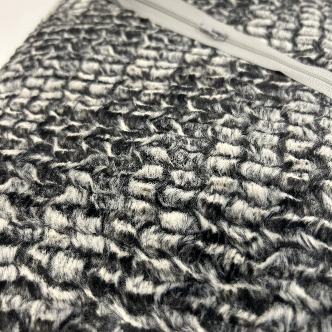 Die Oberfläche erinnert an feines, strukturiertes Fell und sieht auf Sofa, Tagesbett oder im Schlafzimmer sehr hochwertig aus.